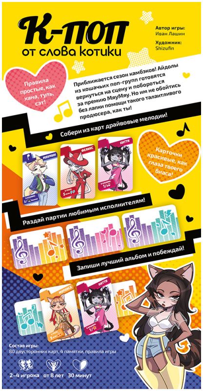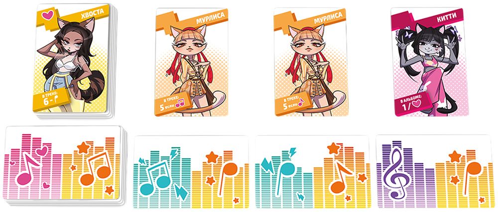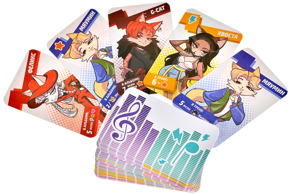 В свой ход вы берёте пару карт — исполнителя и нотную партию. Создавайте треки, размещая котиков-айдолов поверх нот, соблюдая их требования. Каждый исполнитель уникален: