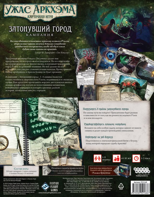 • Сценарные колоды кампании «Затонувший город» (несколько взаимосвязанных сценариев, полностью охватывающих историю Р’льеха)