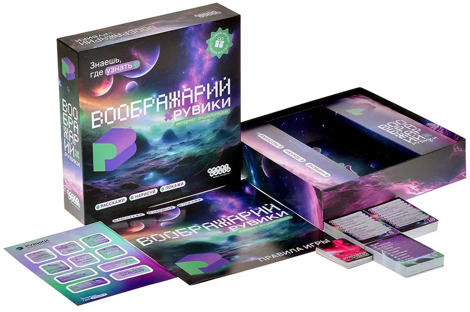 «Воображарий: Рувики» — самостоятельная настольная игра из популярной серии «Воображарий», в которой участники соревнуются в умении объяснять слова и быстро угадывать ассоциации. Это динамичная игра для 3–9 человек от 10 лет, рассчитанная примерно на 30 минут и идеально подходящая для семейных вечеров, встреч с друзьями и неформальных компаний.